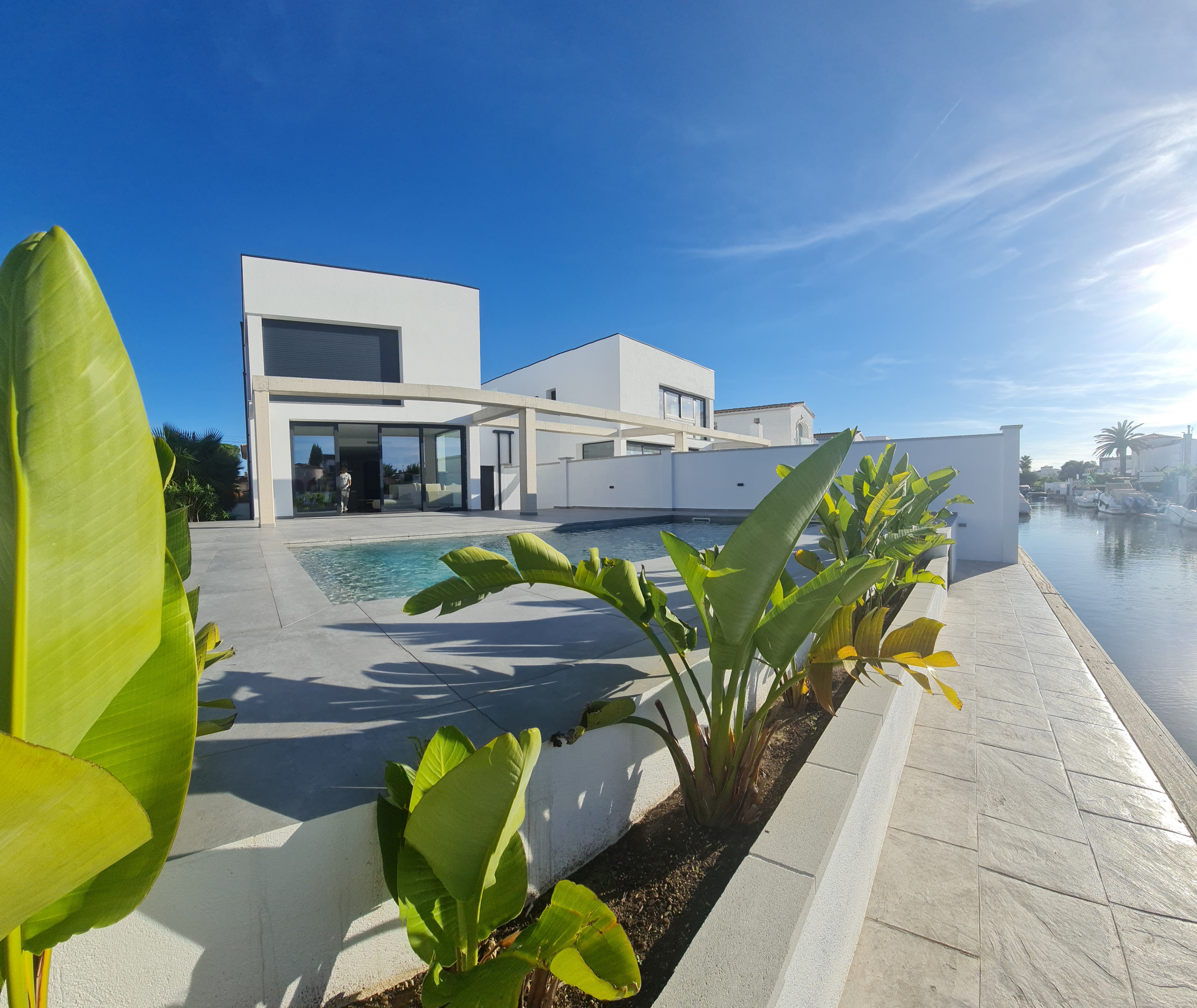 Presentamos esta magnífica vivienda de diseño contemporáneo, situada en una de las zonas más privilegiadas de Empuriabrava, la marina residencial más grande de Europa. Con un precio de 1.200.000 €, esta propiedad combina elegancia, confort y una ubicación excepcional junto al canal.